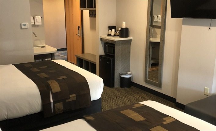 Very nice, extremely clean room. Comfortable bed. Door to parking lot makes it easy to load and unload car. Fun, western furniture...Nice staff. Very well located next to Park entrance. Walking distance to restaurants and shops.